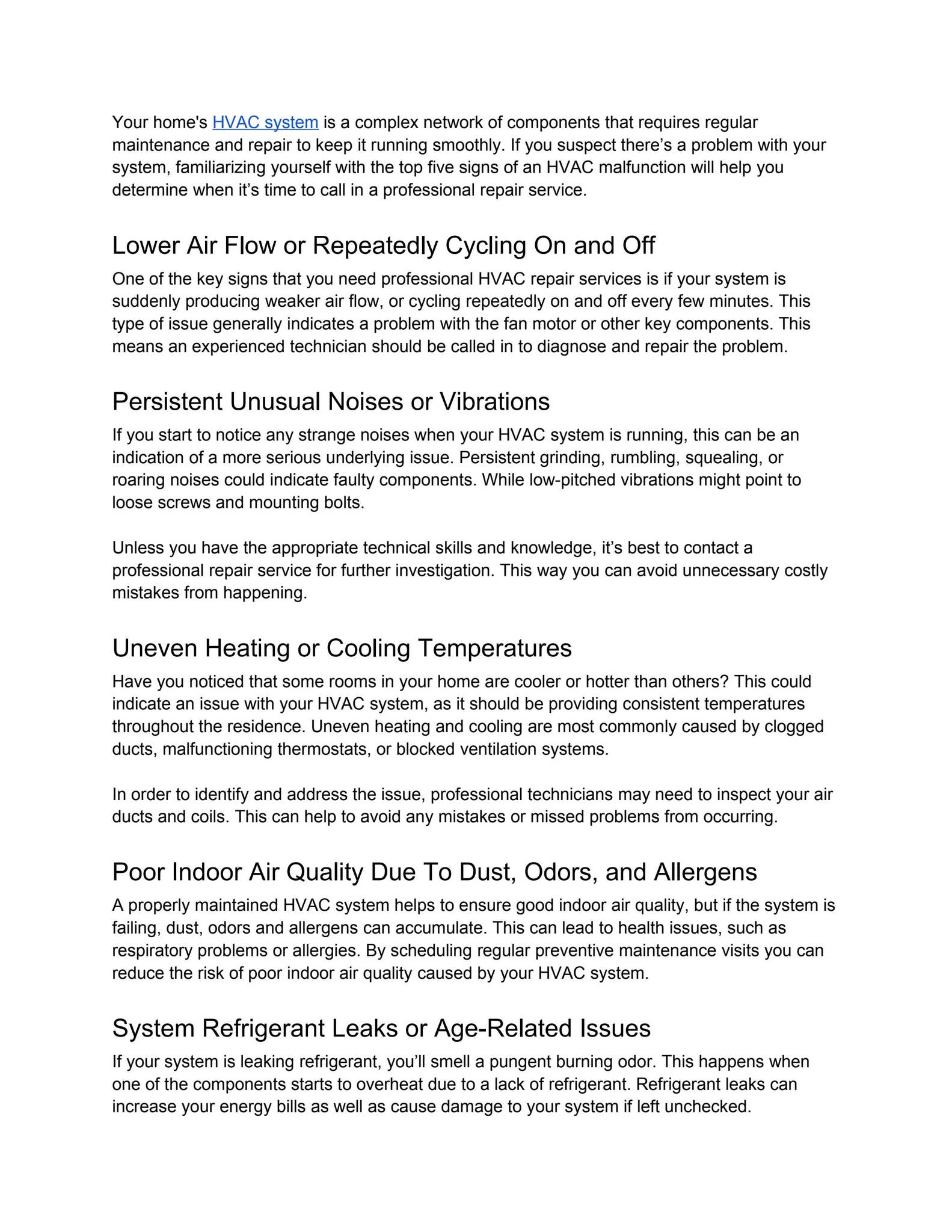 Q: What signs indicate my system needs urgent repair during winter? Roseburg's Secret To Knowing When Your HVAC Needs Urgent Repair A: Listen for unusual sounds like rattling or grinding, notice inconsistent room temperatures, or see your utility bill spike without increased usage. These are early red flags.