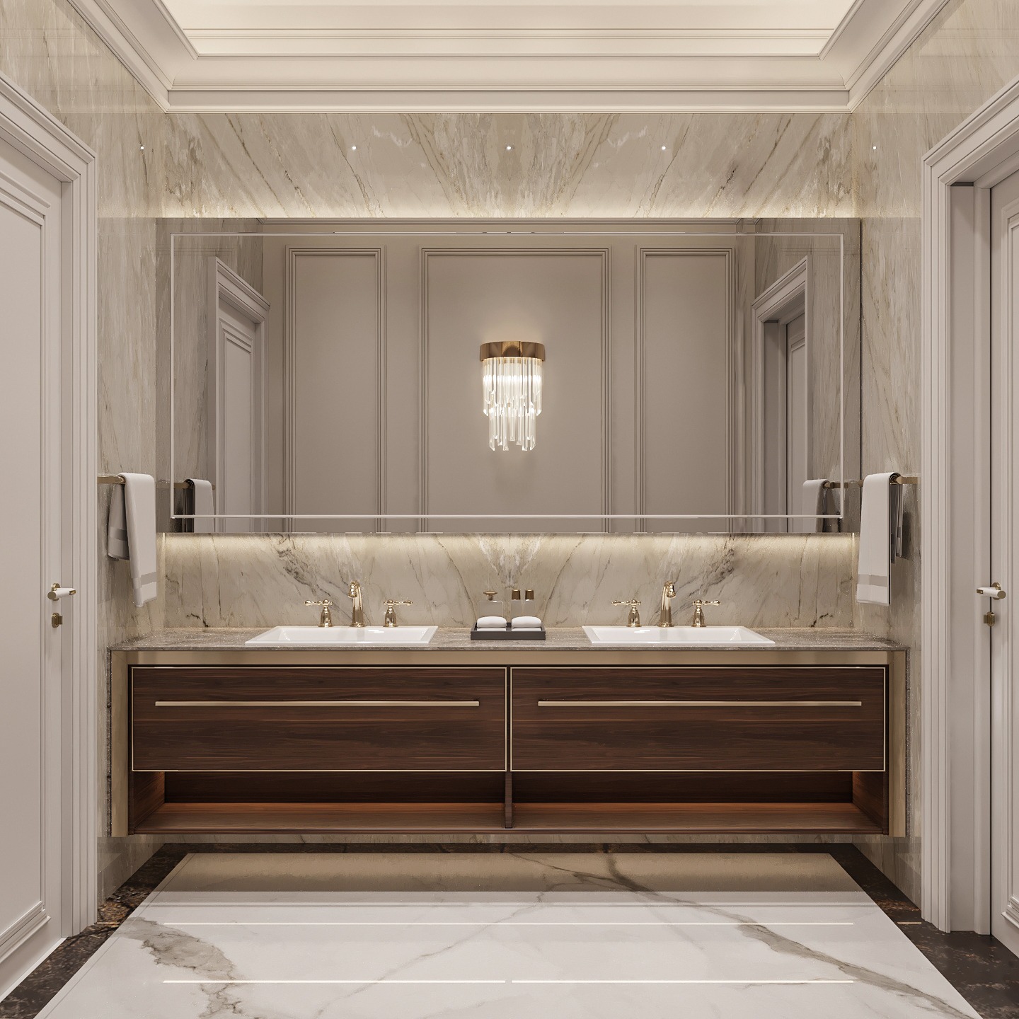 The result is a bathroom that functions as both relaxation space and design statement. It becomes a daily ritual area where self-care and daily hygiene merge seamlessly.